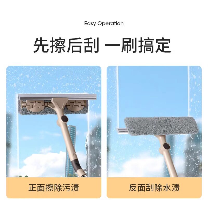 美丽雅双面刷擦窗器擦玻璃神器家用刮水伸缩杆清洁工具窗 户刮玻