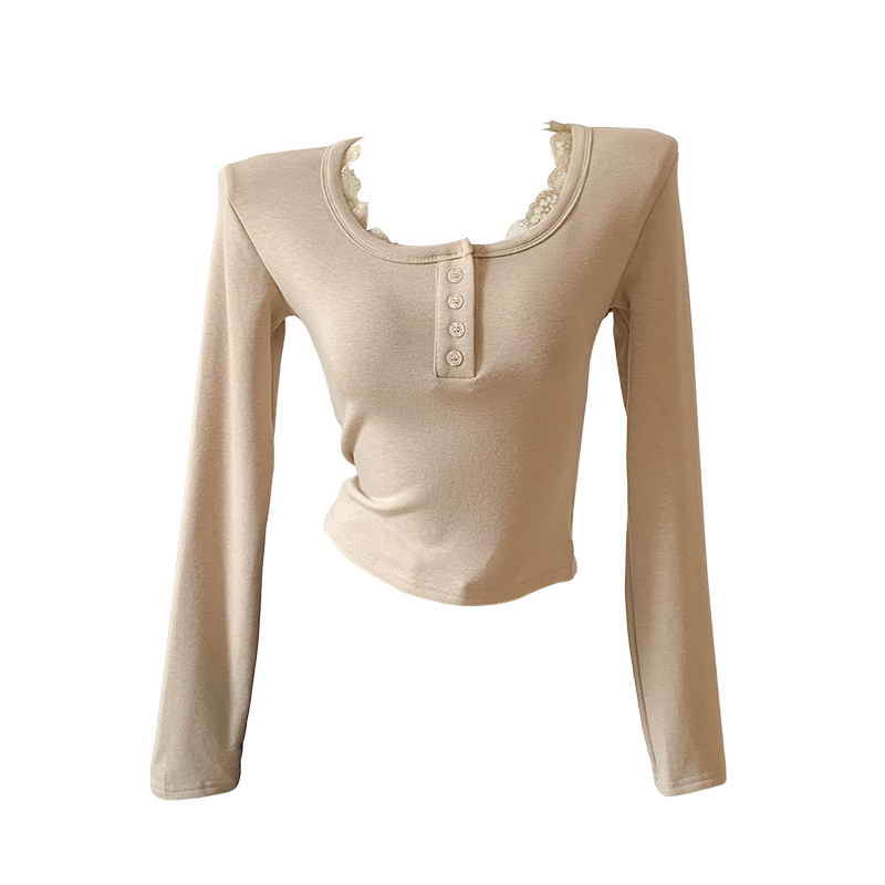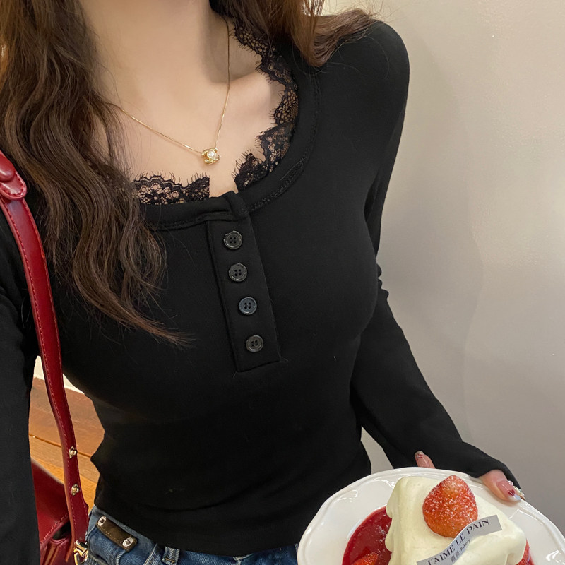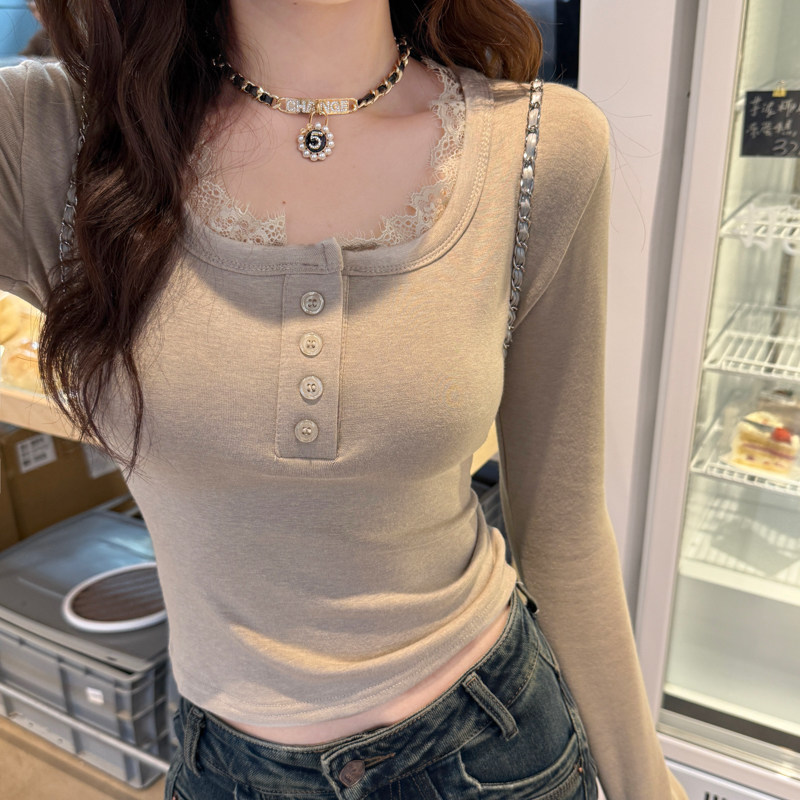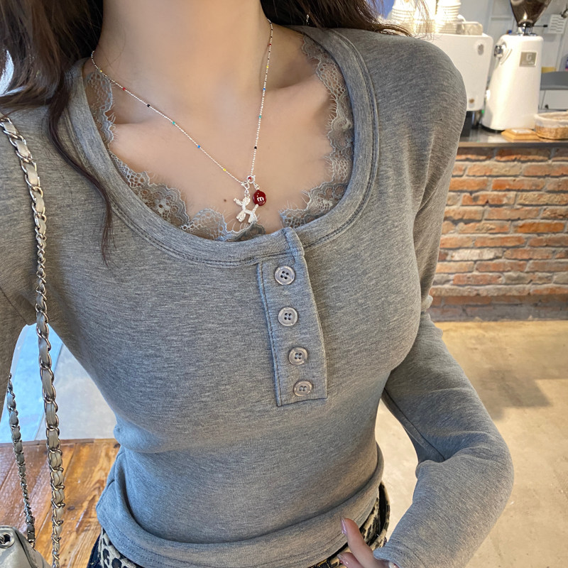 白色蕾丝长袖打底衫女内搭2025秋冬新款T恤修身磨毛加绒加厚上衣