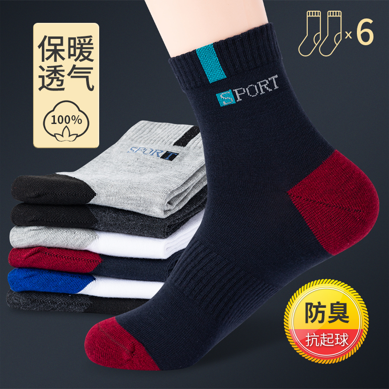 精梳棉袜子男士纯棉抗菌保暖中筒秋季男袜长运动全棉防臭吸汗秋冬