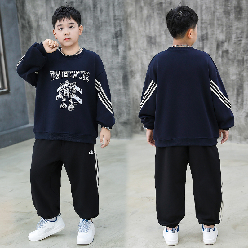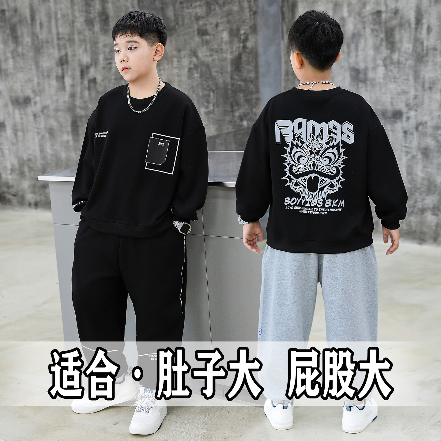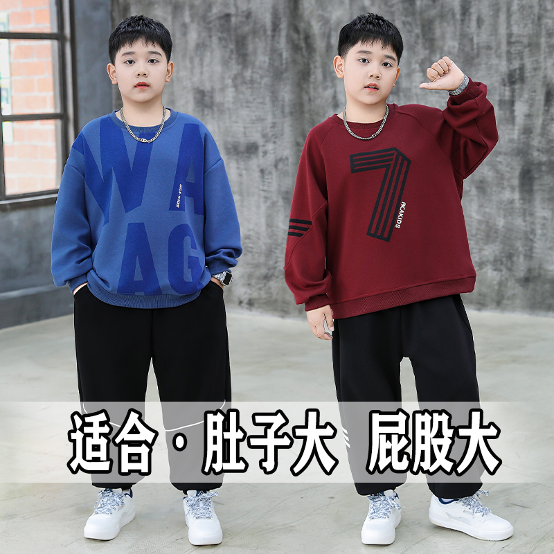 偏胖男孩衣服春秋大码卫衣两件套