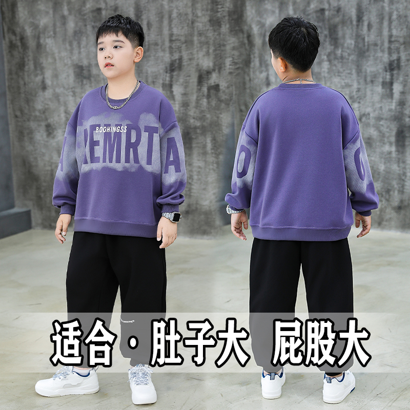 胖男童卫衣套装加肥加大秋装2025新款宽松运动两件套偏胖男孩衣服