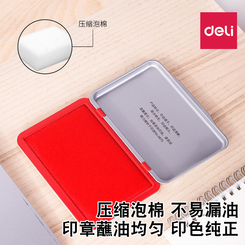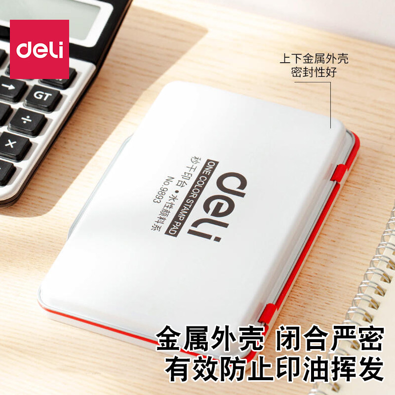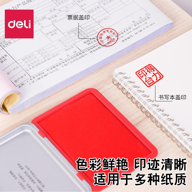 得力速干印台红色大号秒干印章财务快干清洁防水性小印泥金属铁盒