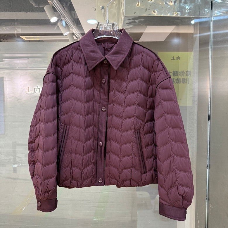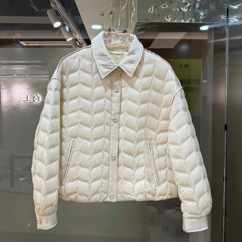 2025冬装新款时尚轻薄90白鸭绒羽绒服外套衬衫领单排扣短款小个子