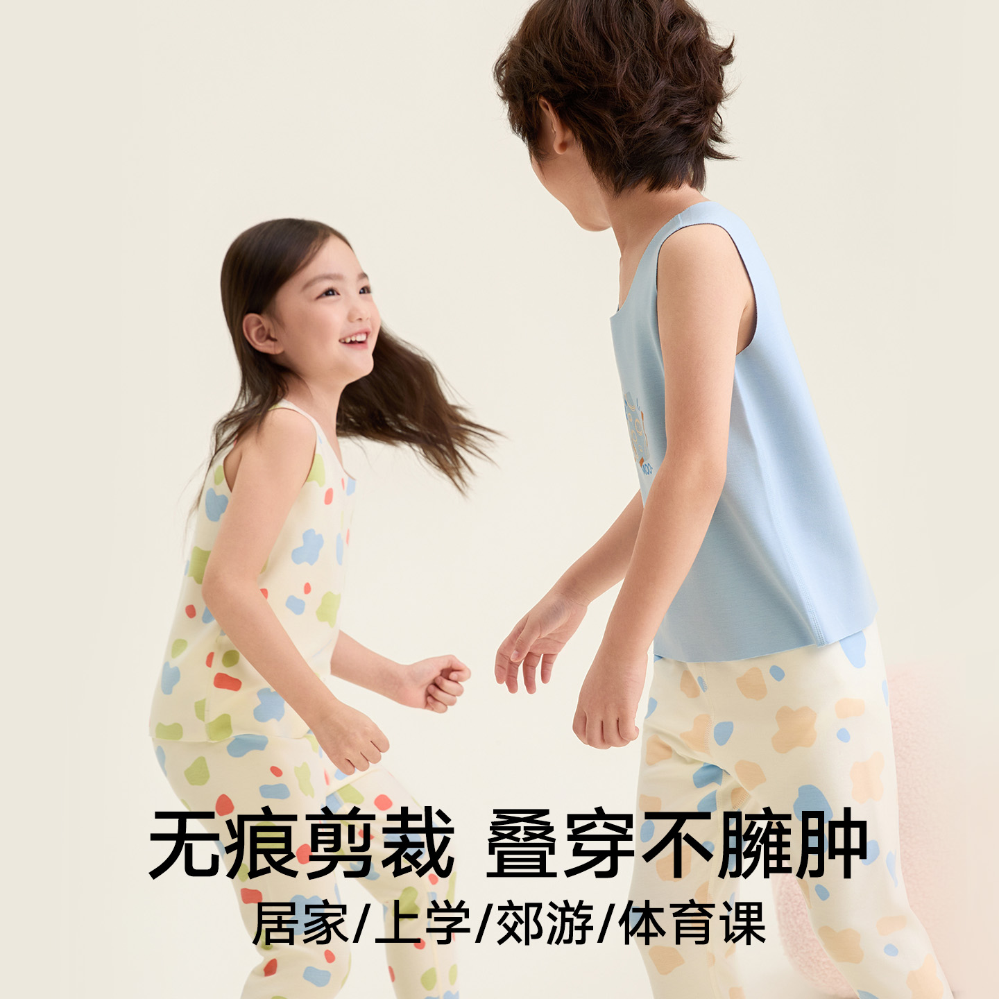 松山棉店可爱奶牛儿童背心牛奶棉吸汗透气无痕男童女童换季打底秋