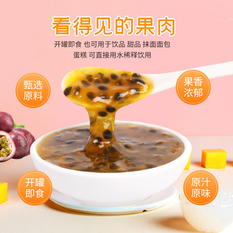 鲜活百香果酱果肉酱1.2kg优果C浓缩花果茶酱果汁饮料奶茶店用原料