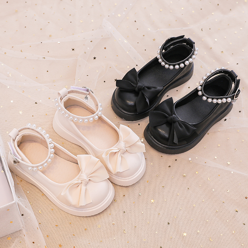 女童jk皮鞋2022新款蝴蝶结低帮软皮公主鞋春秋水钻单鞋圆头女孩鞋