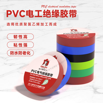 德力西电工胶布耐高温防水PVC电线绝缘胶带黑红蓝色20米电气胶布