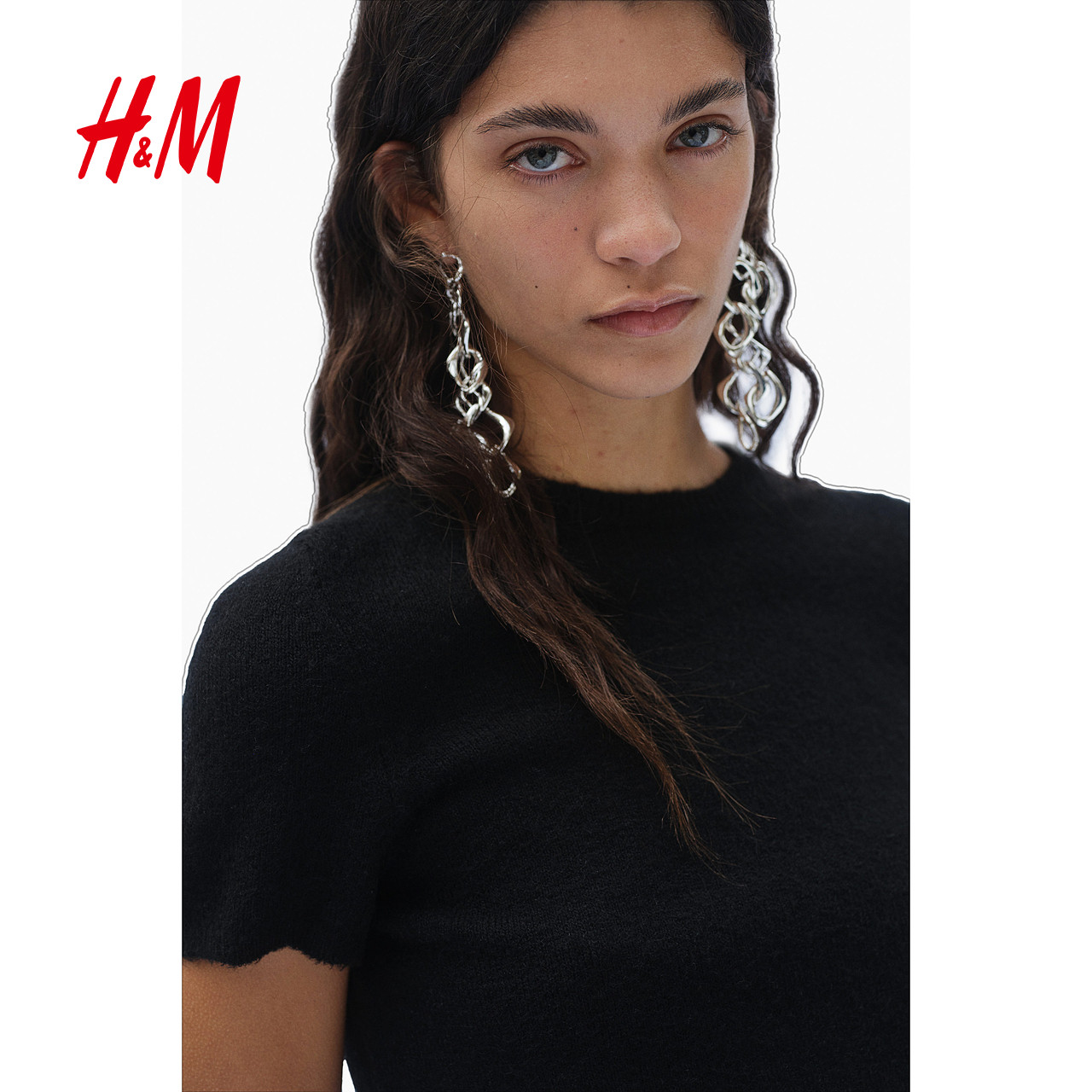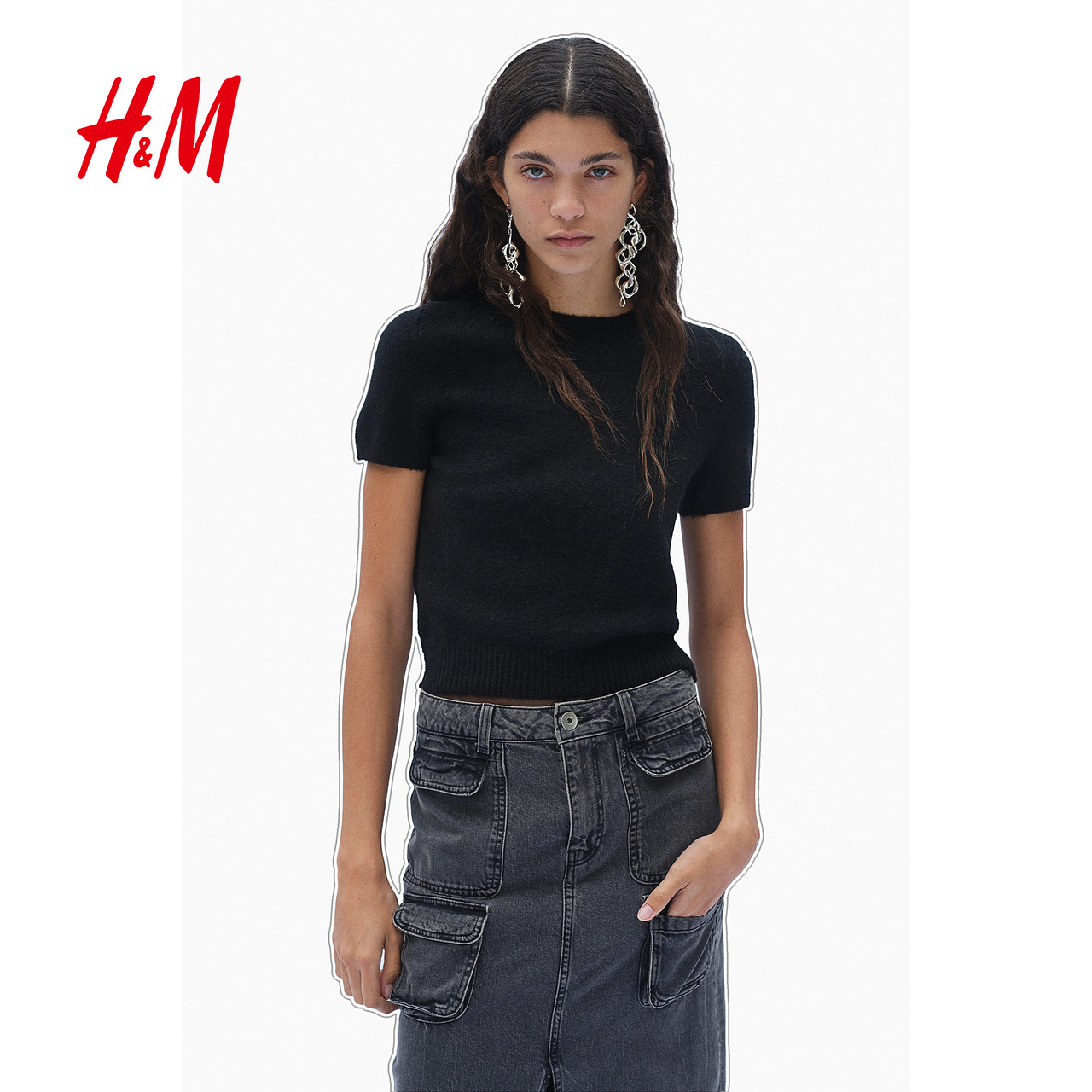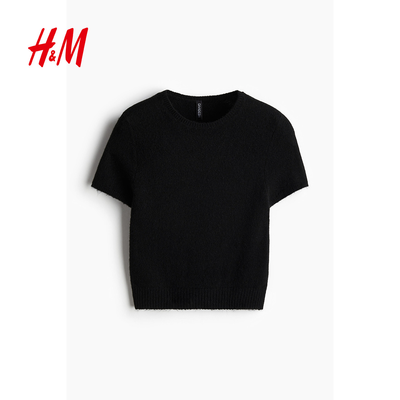 HM女装毛针织衫春季圆领时尚显瘦修身气质短袖T恤1262821