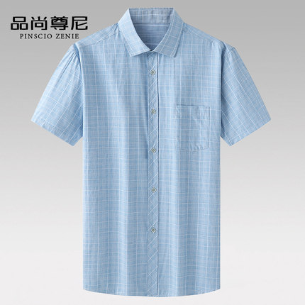 男士短袖格子衬衫品尚尊尼