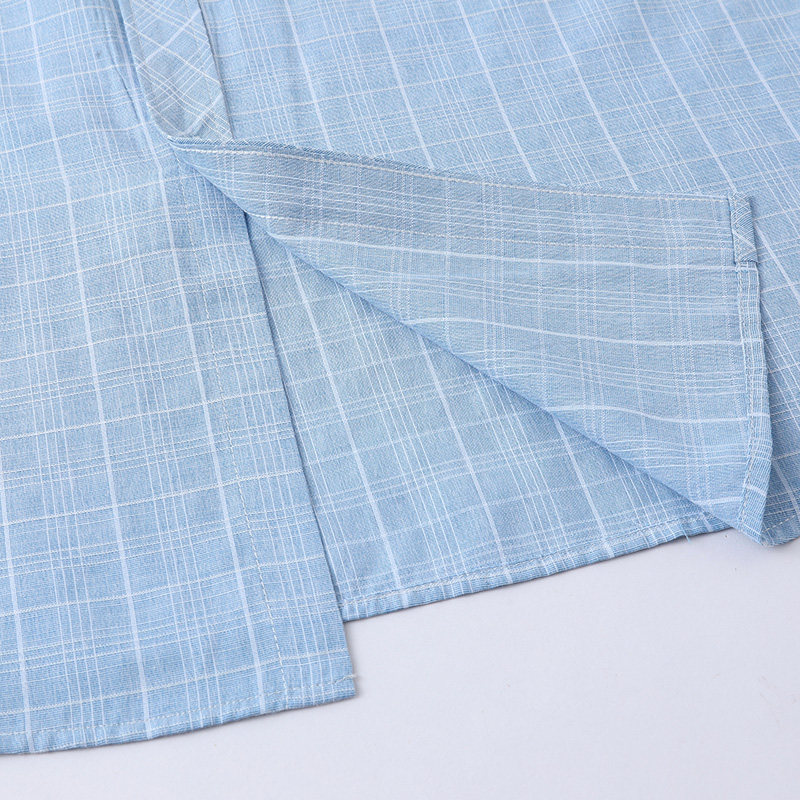 男士格子衬衫短袖冰丝亲肤透气爸爸上衣夏季宽松衬衣中老年人夏装