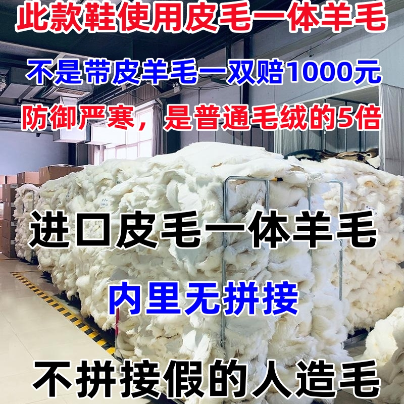 外贸老北京男士真皮羊毛一体冬季加绒保暖中老年爸爸棉鞋老头鞋皮