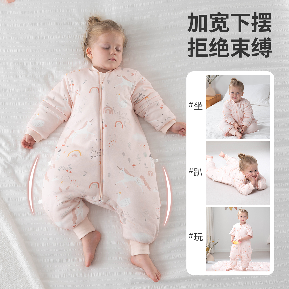 婴儿睡袋秋冬款加厚儿童分腿新生儿小宝宝纯棉睡衣恒温防踢被神器