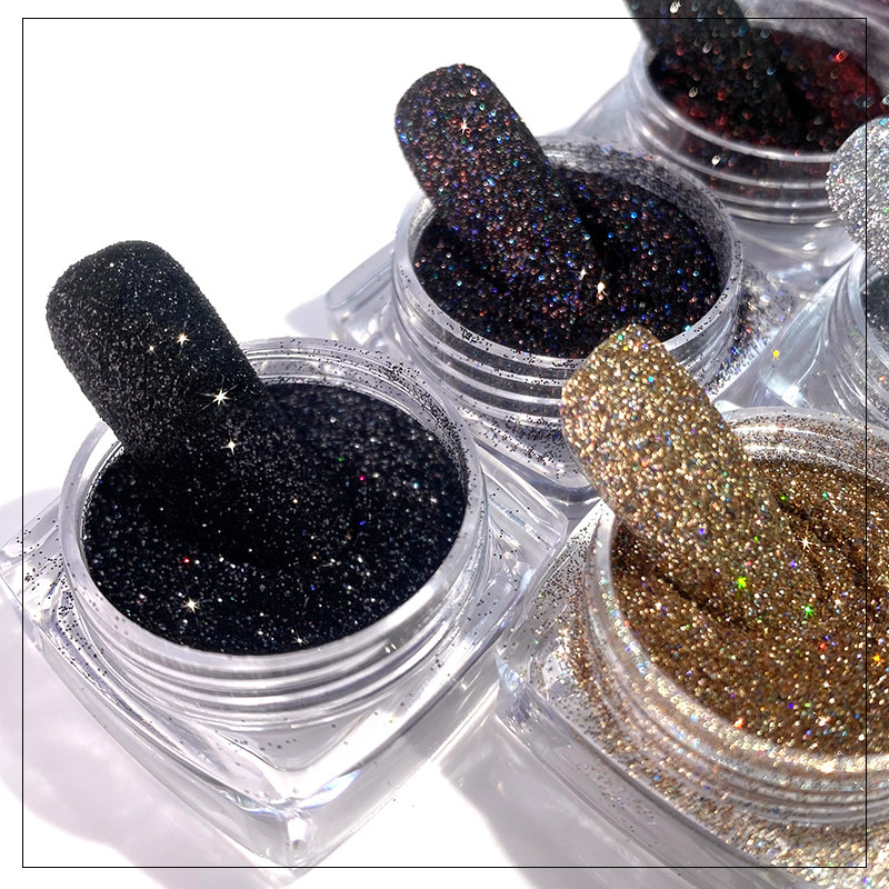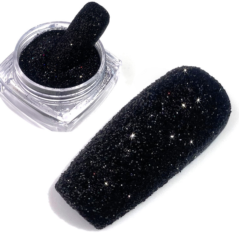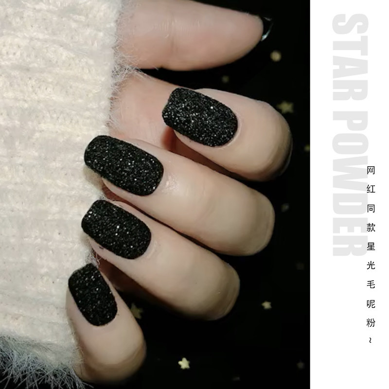 黑色星光粉美甲网红毛呢粉2025年爆款闪粉饰品指甲装饰砂糖雪绒粉