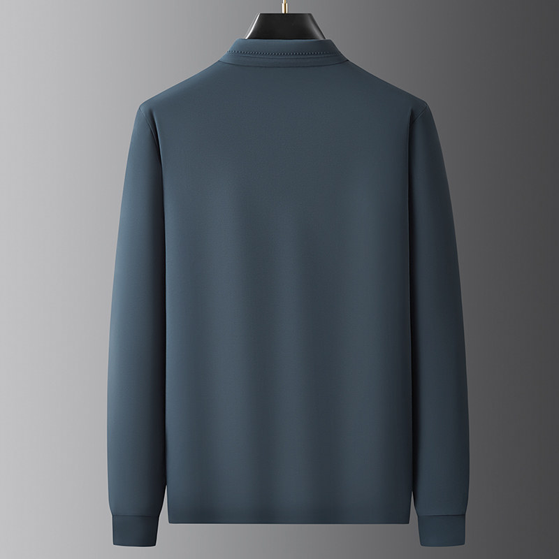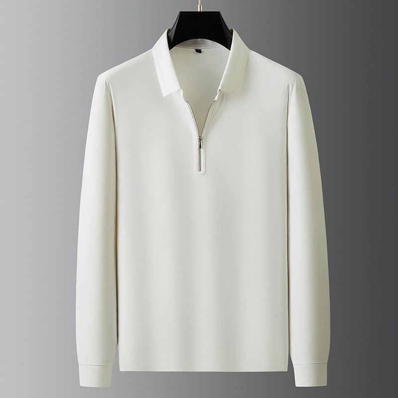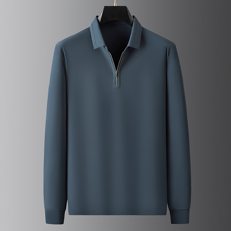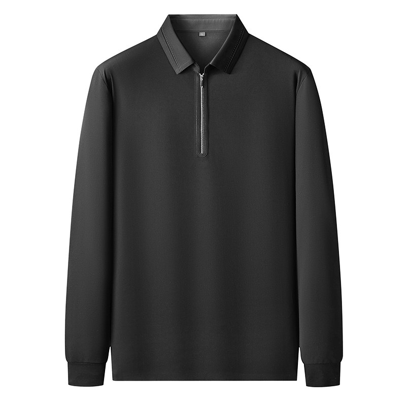 胖子宽松拉链翻领体恤秋冬厚款男士加肥大码高弹力免烫长袖polo衫