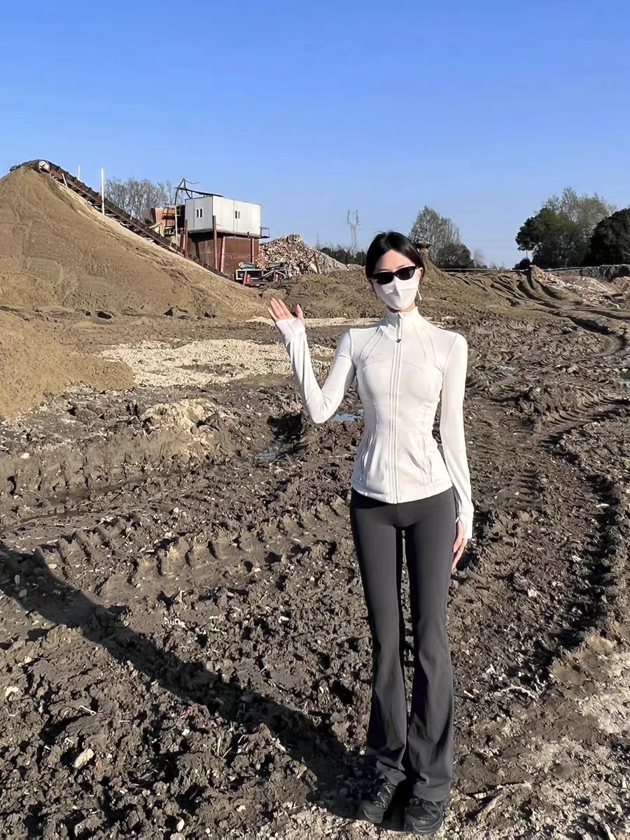 【韩国设计师】修身版瑜伽服白蛋白黑色开衫运动夹克防晒衣
