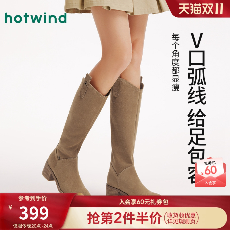 热风西部牛仔靴2025年冬季新款复古棕色长筒靴美拉德时装靴子女鞋