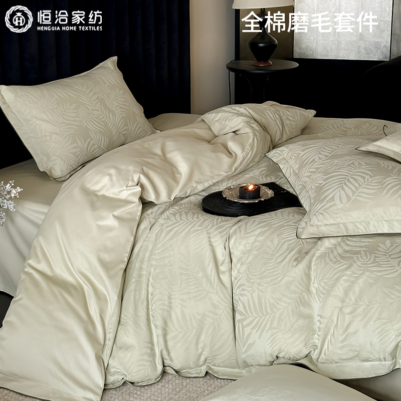 秋冬加厚全棉磨毛四件套轻奢厚织提花超柔纯棉保暖被套床品紫绿色