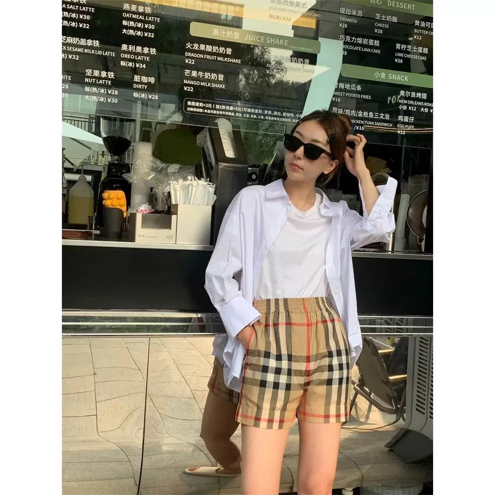 (高品质)秋夏季女士经典格子阔腿短裤黑白边条纹休闲高腰长裤女