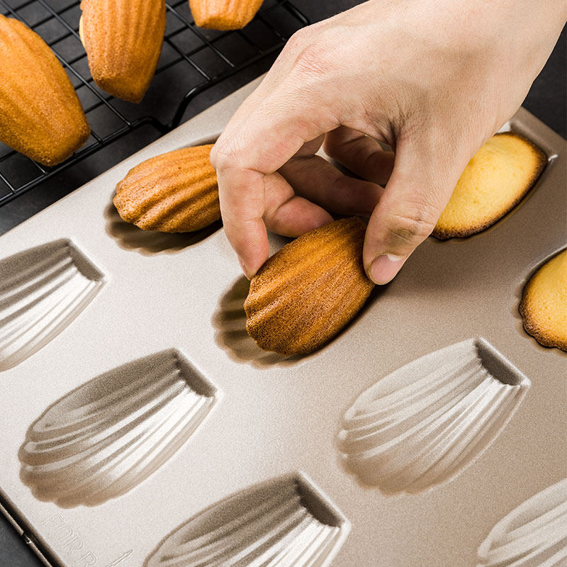 法焙客家用金色不沾12连玛德琳贝壳蛋糕模不粘烤盘烘焙模具烤箱用