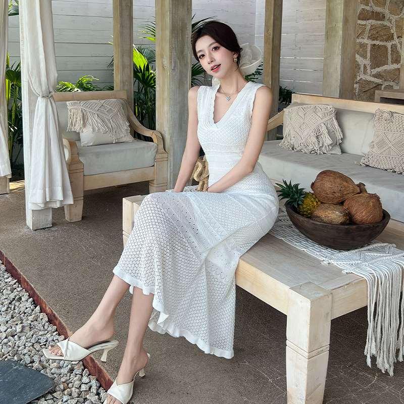 加小码女装春季XXXS小个子150cm显高无袖V领针织连衣裙女高级感潮