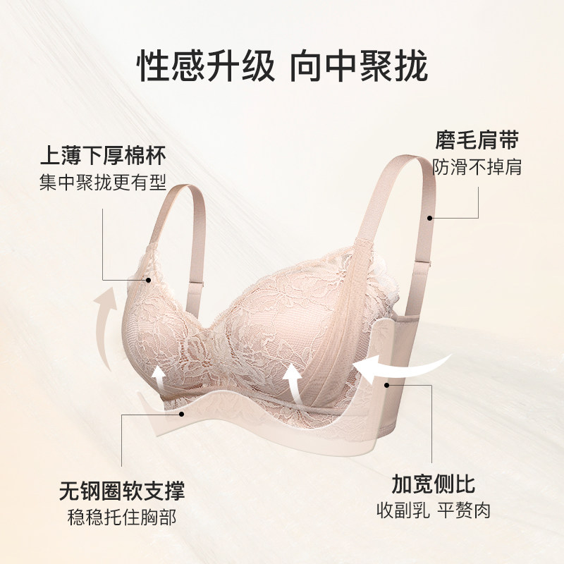 古今内衣小胸聚拢显大无钢圈聚拢性感蕾丝防下垂文胸罩