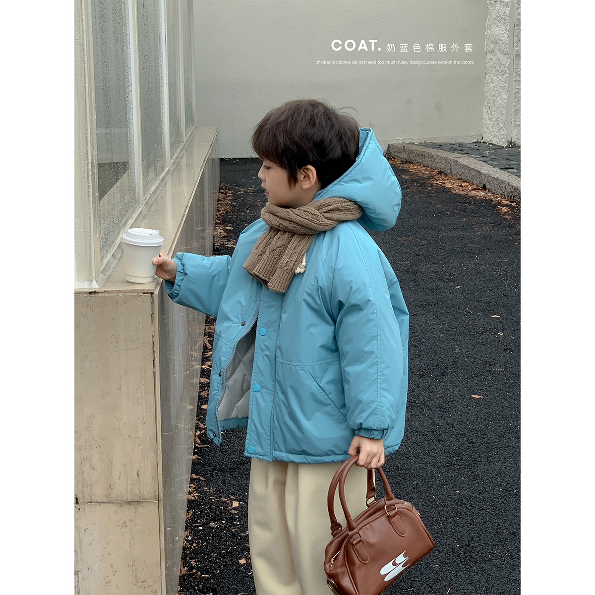 虾酱麻麻男女童棉服冬季2024新款蓝色棉衣洋气加厚儿童装夹棉外套