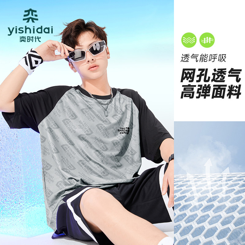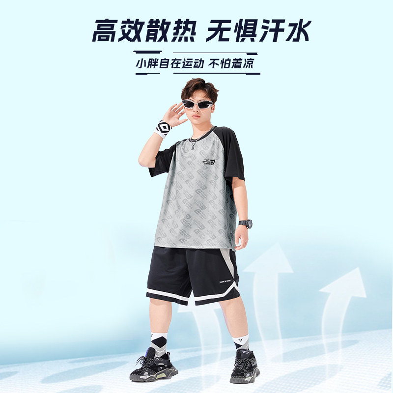 【凉感T恤】奕时代胖男童速干短袖t恤夏季轻薄中大童宽松透气上衣