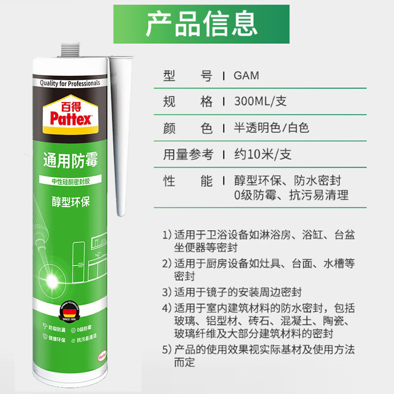 包邮德国汉高百得防水防霉厨卫玻璃胶马桶密封美容胶厨房缝隙门窗