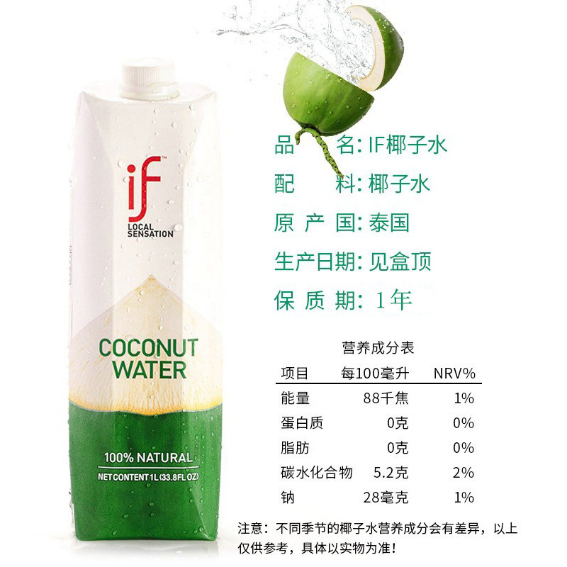 泰国进口if椰子水1L大瓶0脂0添加