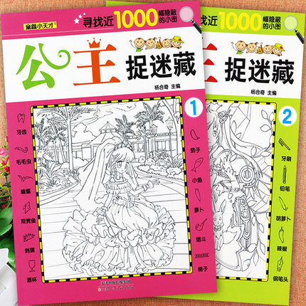 公主捉迷藏涂色图画搜寻王大发现极限视觉挑战童鑫小天才寻找隐藏的图画书找不同新蒙氏幼儿全脑思维游戏训练潜能开发幼儿涂色画本