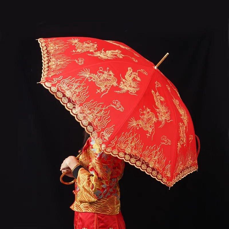 红伞结婚新娘伞婚礼伞红色出嫁雨伞中式古风迎亲接亲伞新娘喜雨伞