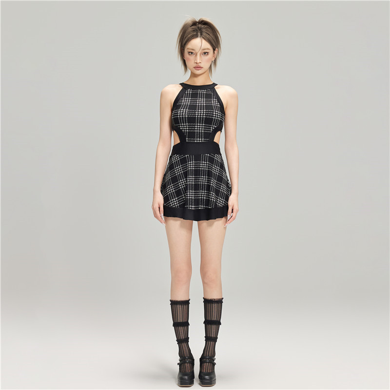 苏拉娜公主连体泳衣女保守显瘦遮肚裙式小胸收腰格子温泉度假泳装