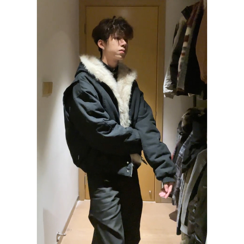 行星世界座山雕夹克棉服男款冬季加厚美式毛领棉衣连帽毛茸茸外套