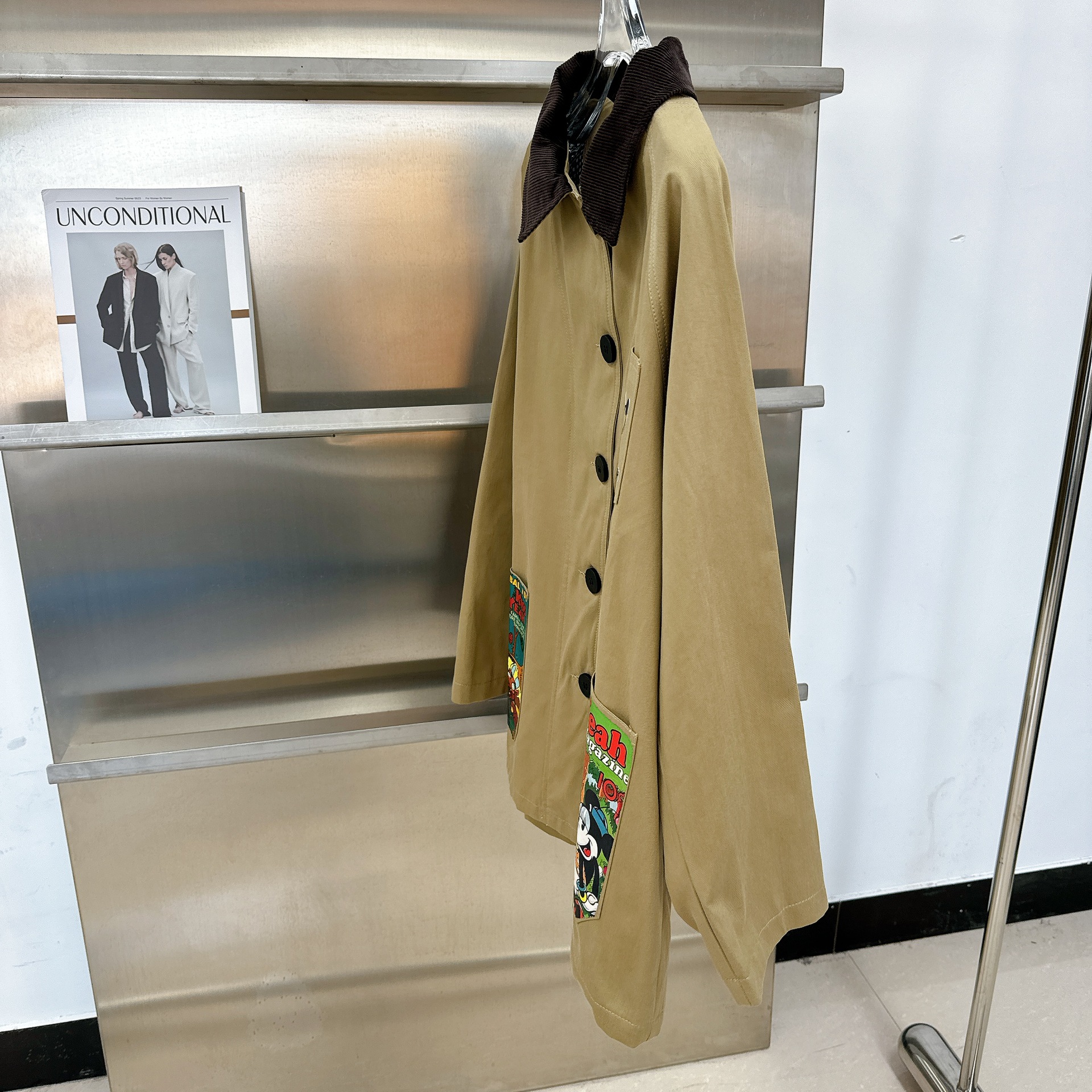欧洲站女装新款时尚百搭卡通米奇印花宽松休闲百搭长袖风衣外套潮