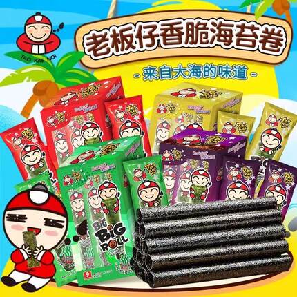 泰国进口老板仔海苔卷小老板儿童解馋小零食休闲食品大礼包紫菜