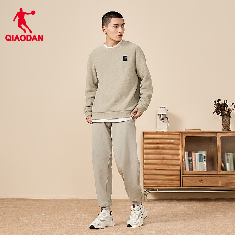中国乔丹运动卫衣男2025冬季新款休闲宽松套头保暖摇粒绒内搭上衣