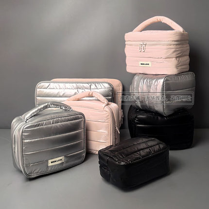 出口高品质夹棉防水大手提化妆包