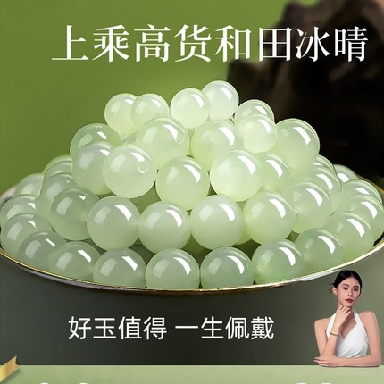 正品天然和田玉玉珠子散珠单颗晴水绿玉珠散珠多宝手串diy项链