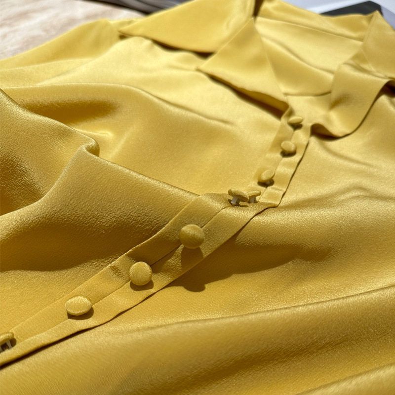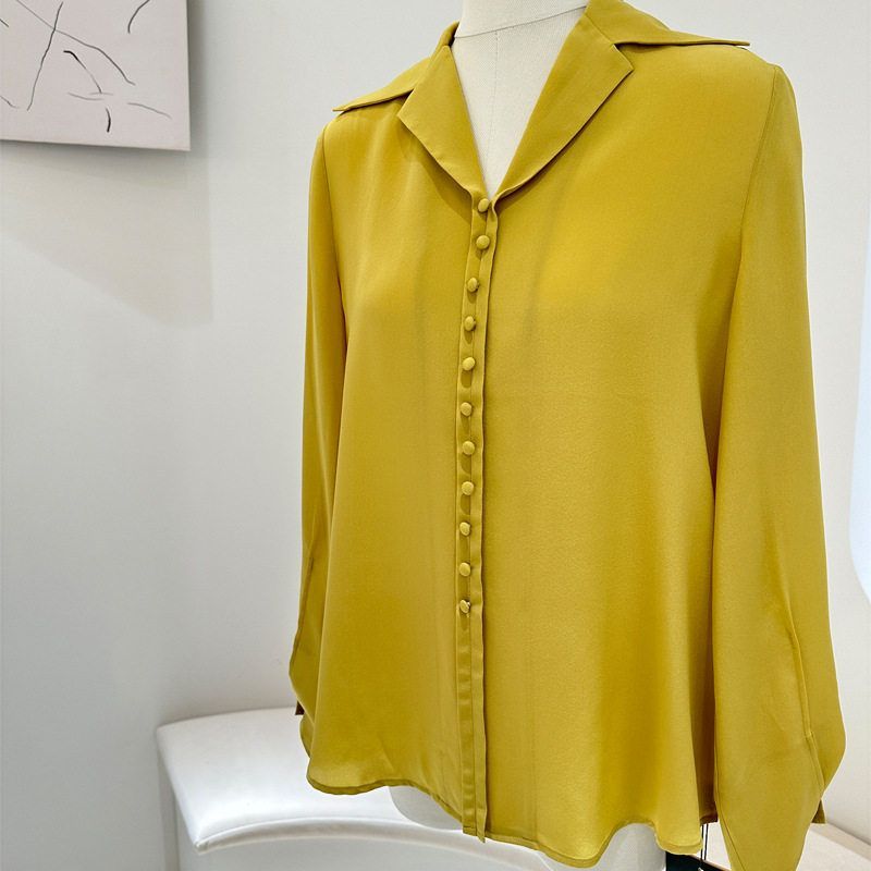 真丝衬衫女2025春夏新款包扣纯色通勤长袖上衣100%桑蚕丝气质衬衣
