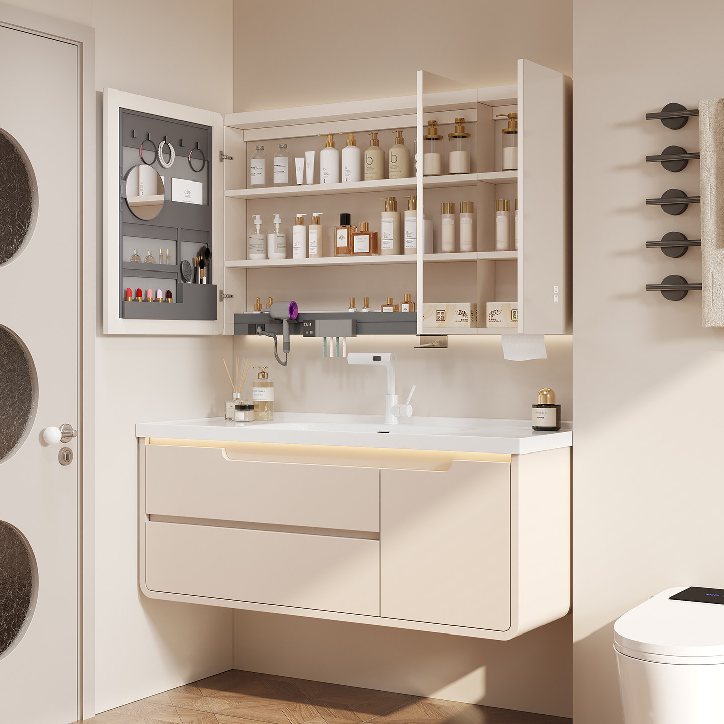 法师奶油风浴室柜+小红书爆款