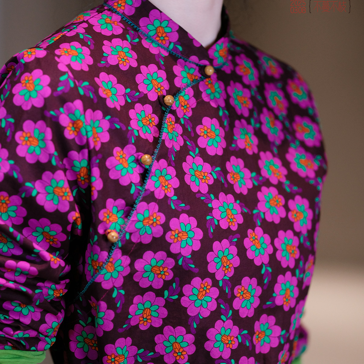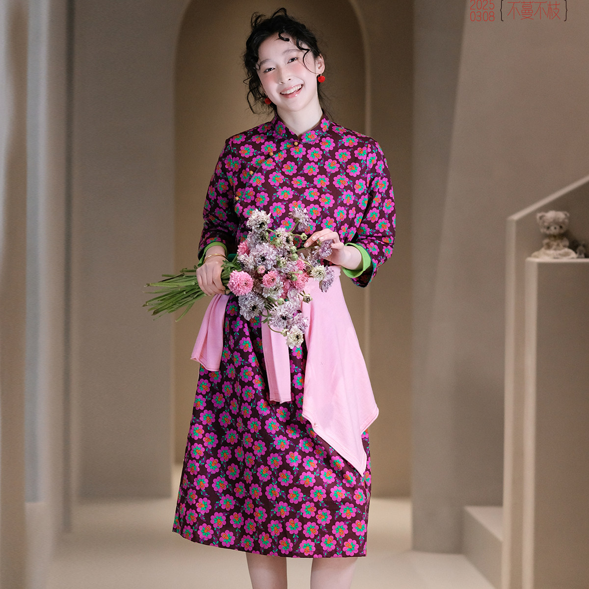 不蔓不枝【蔓影】改良旗袍连衣裙纯棉印花碎花显瘦文艺复古春季