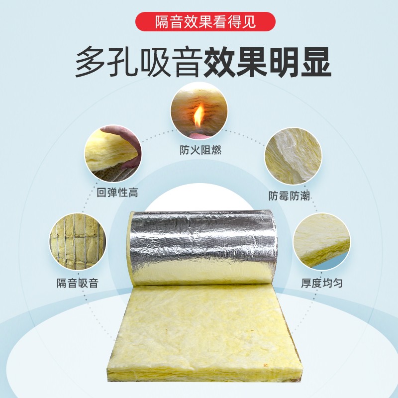 隔音棉墙体吸音棉室内屋顶隔音毡吊顶消音板玻璃棉卷防火保温材料