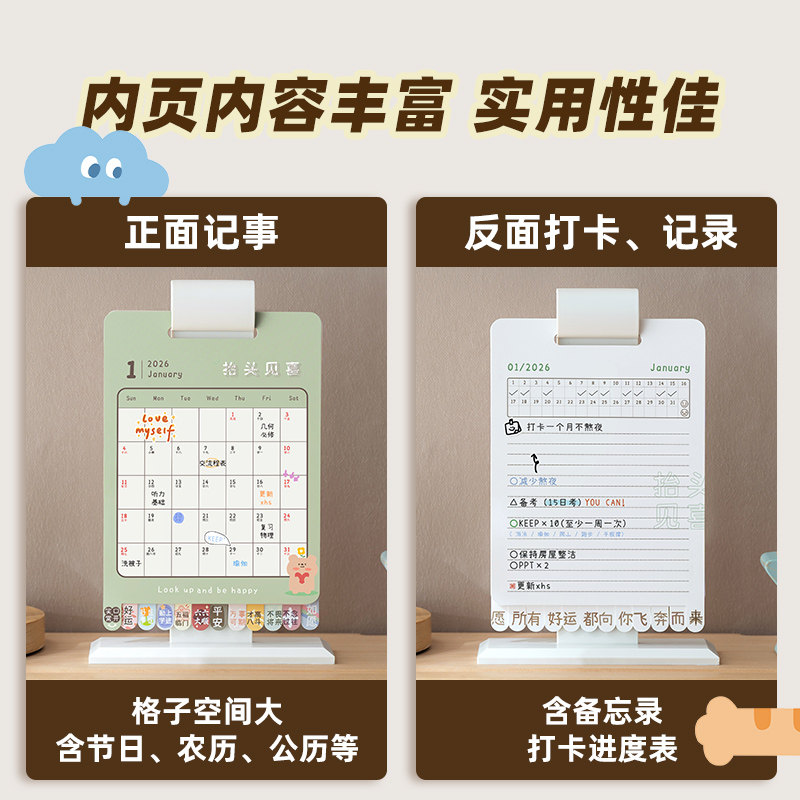 卡通萌兽台历2026年新款翻页记事日历高档活动台历式创意励志记事本办公室桌面年月历摆件中高考倒计时提醒牌