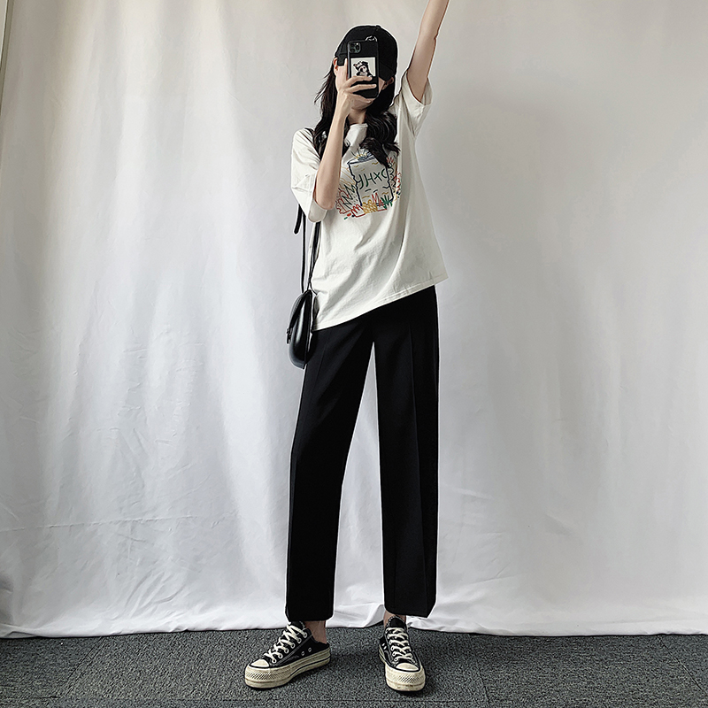 阔腿裤子女夏季薄款高腰显瘦黑色西装直筒宽松垂感百搭休闲九分裤