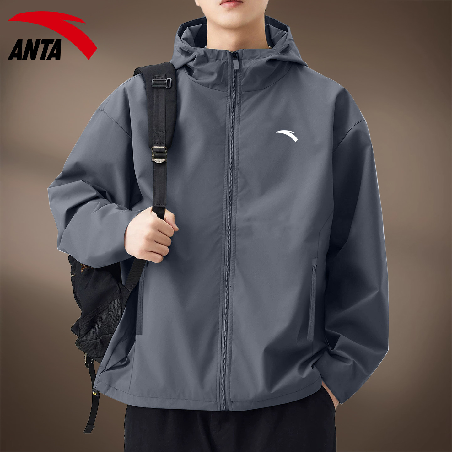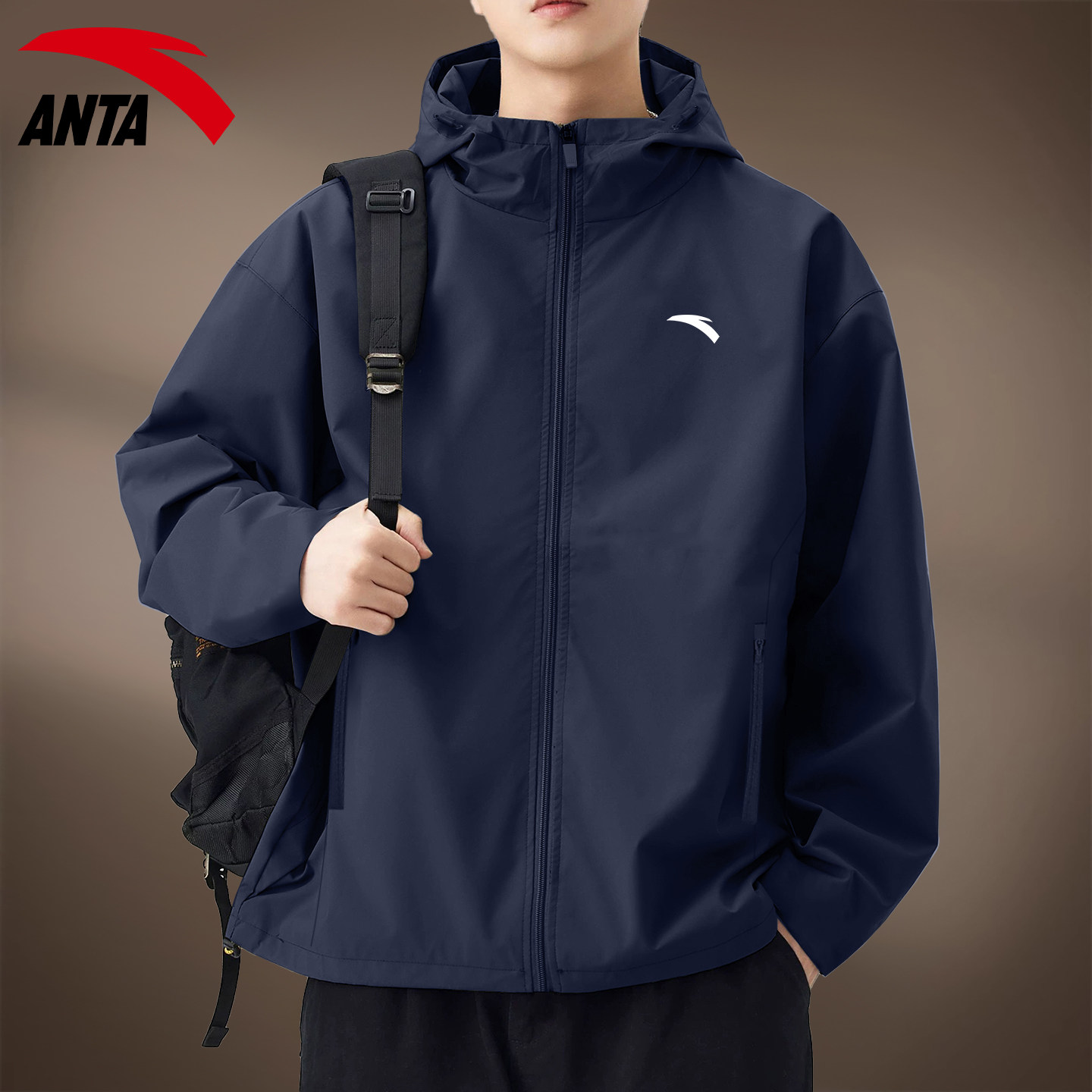 安踏青少年外套男休闲黑色