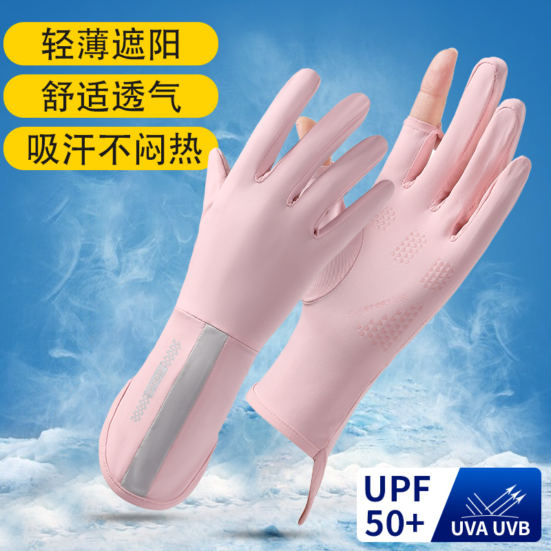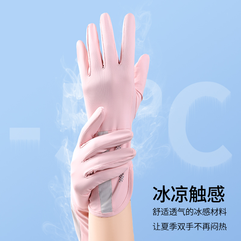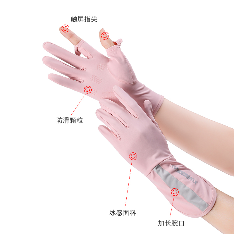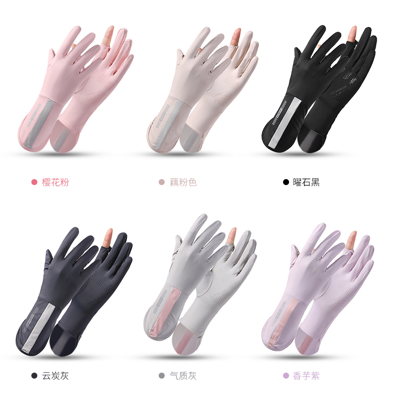 冰丝防晒手套女款薄款夏季防紫外线透气骑行手套防滑漏指触屏女士