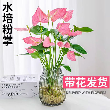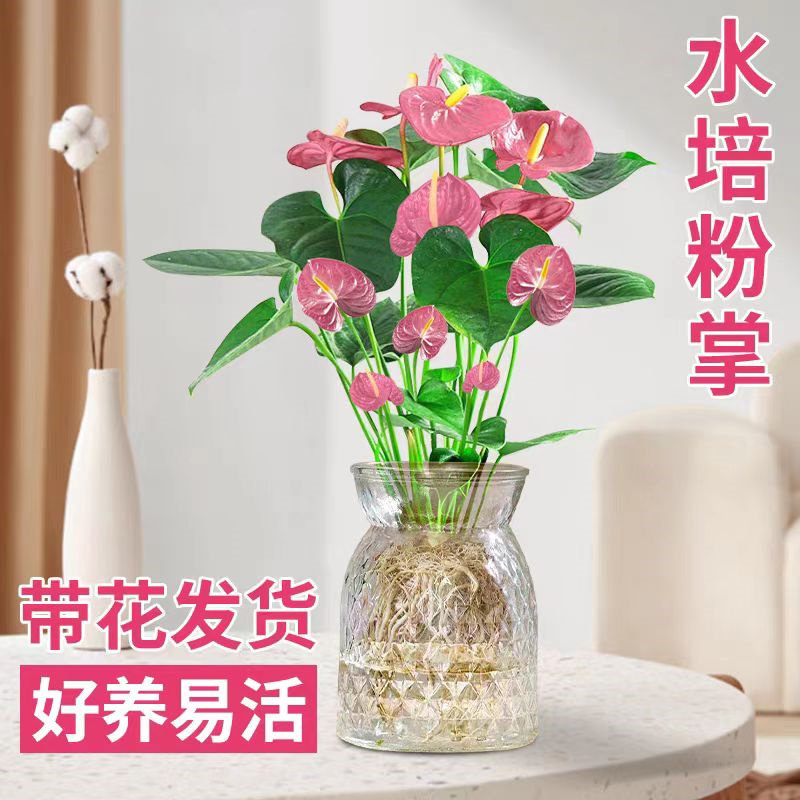 粉掌盆栽水培植物室内好养绿植水养花卉四季常青红掌鲜花一帆风顺