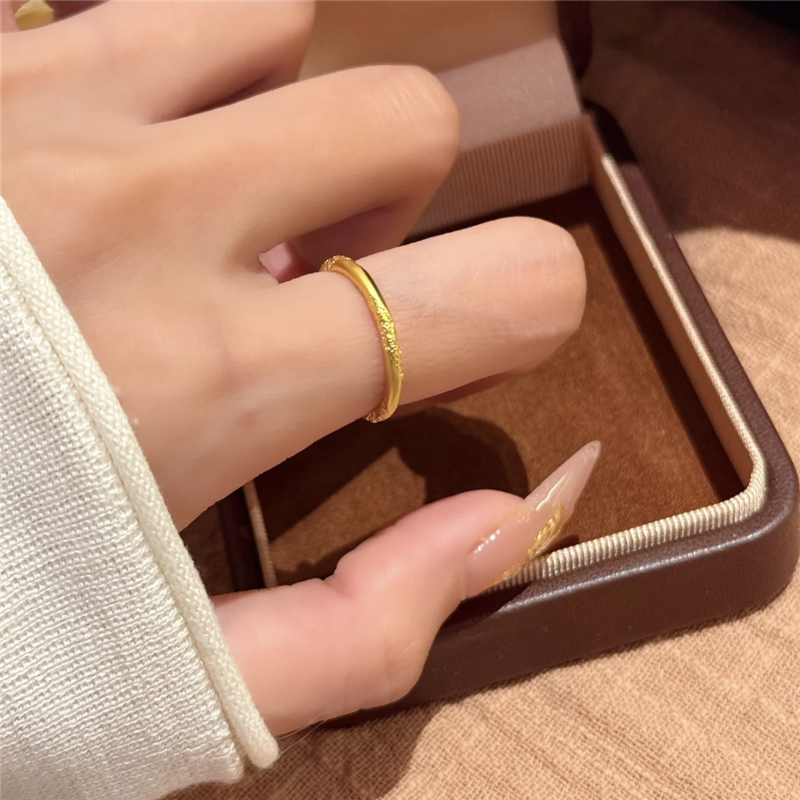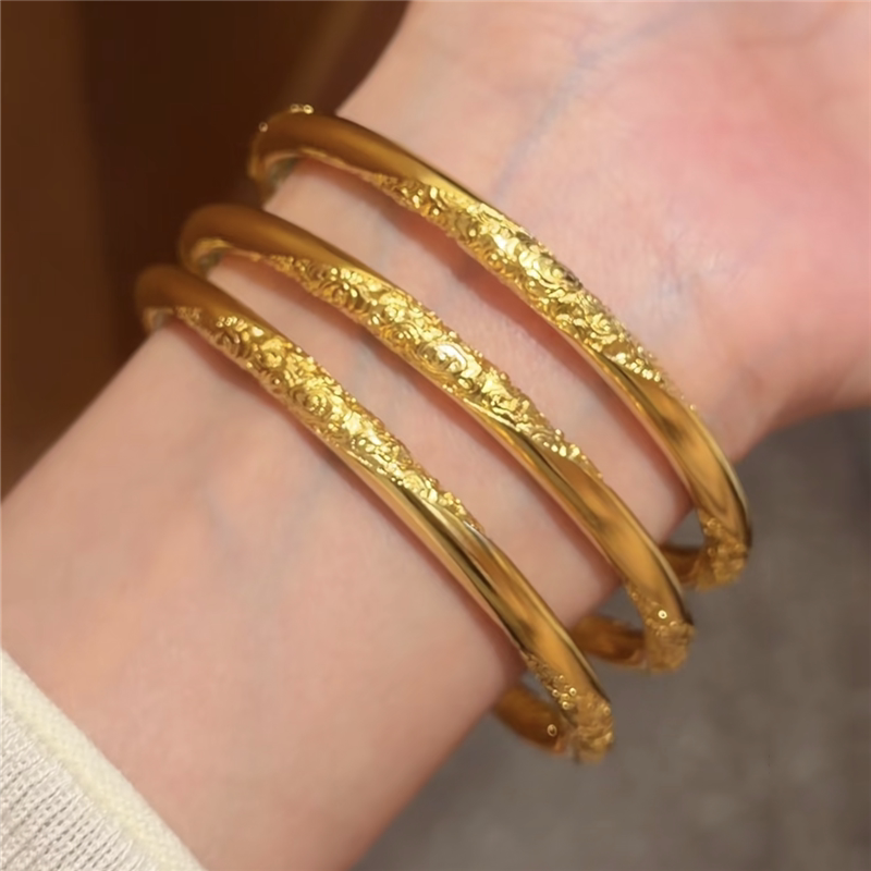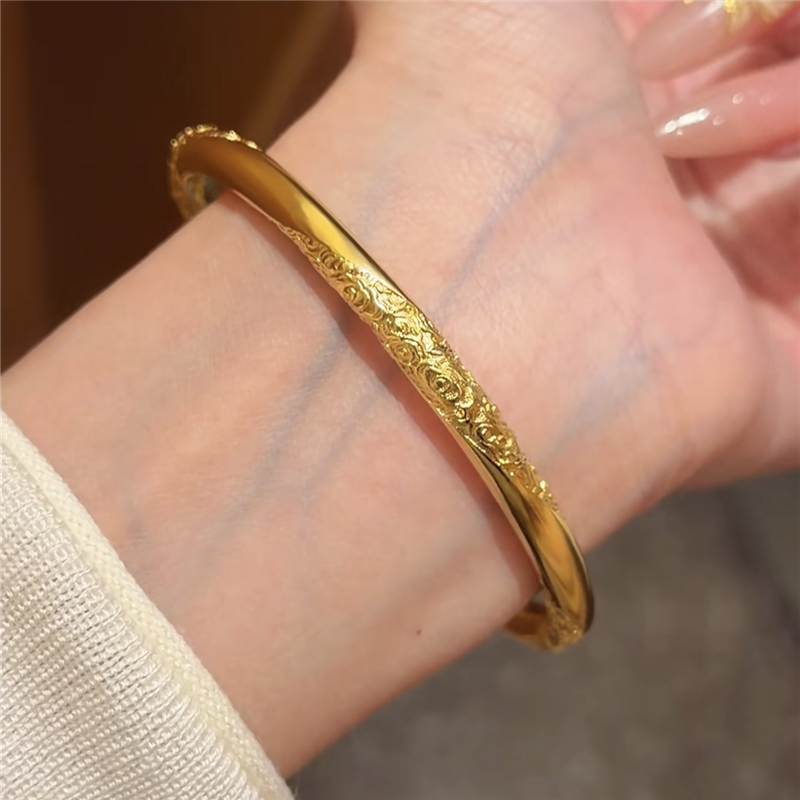 古法纯手工雕刻祥云纹纳福传承手镯女仿黄金色卷草纹素圈镯子手环