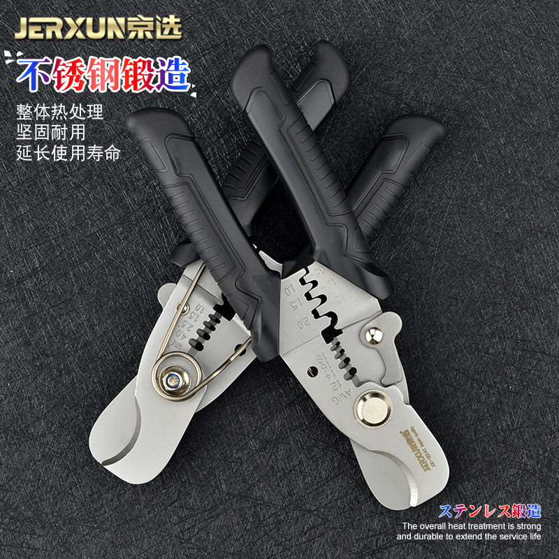 京选电缆剥线钳压线拨线钳扒皮器多功能电线光纤剪刀电工网线钳子