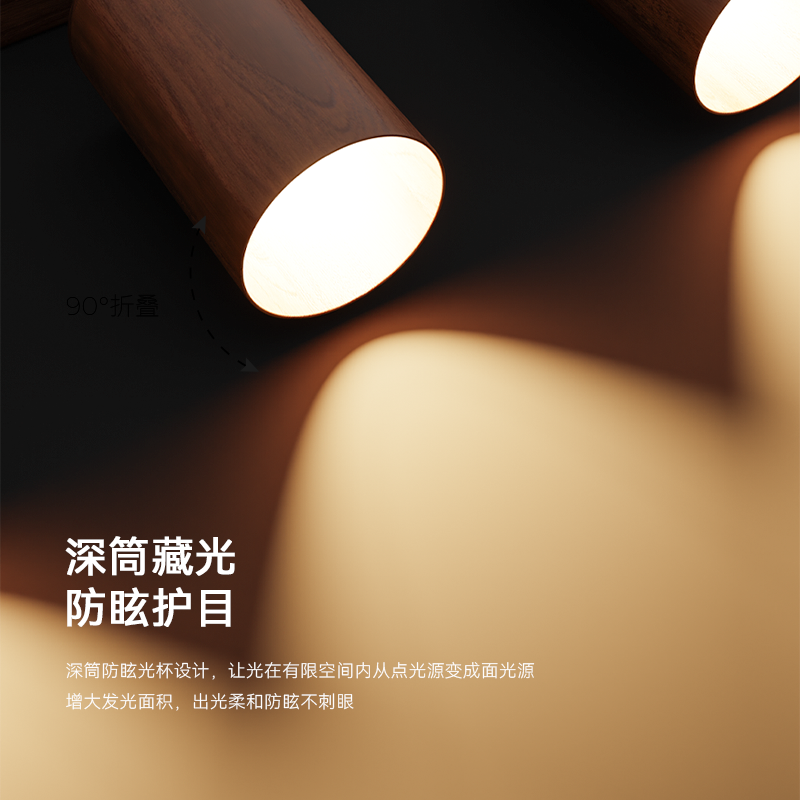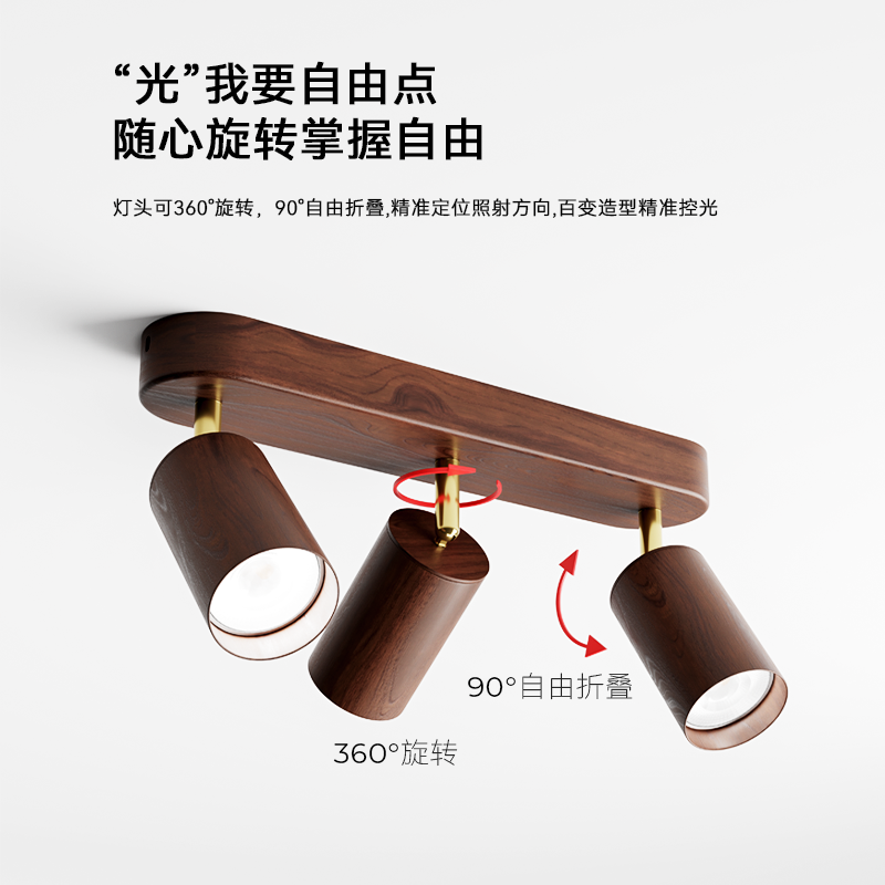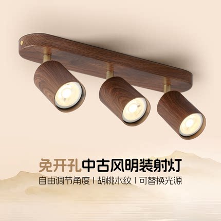 中古风明装射灯全光谱护眼可调节角度轨道灯胡桃木二头三头吸顶灯